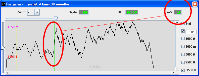 I hit the best thermal I have had for 11 years i.e. since the summer 1994 having 3 km to the ceiling on Zealand. This time I had 3.9 m/s during a lift of 1350 m.